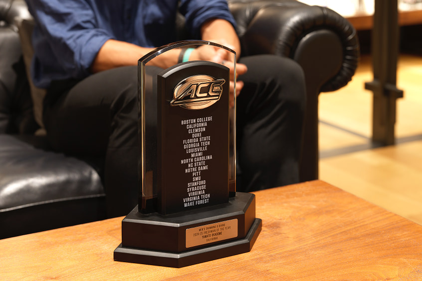 2024年のNCAA平泳ぎで準優勝を獲得した時のトロフィー。